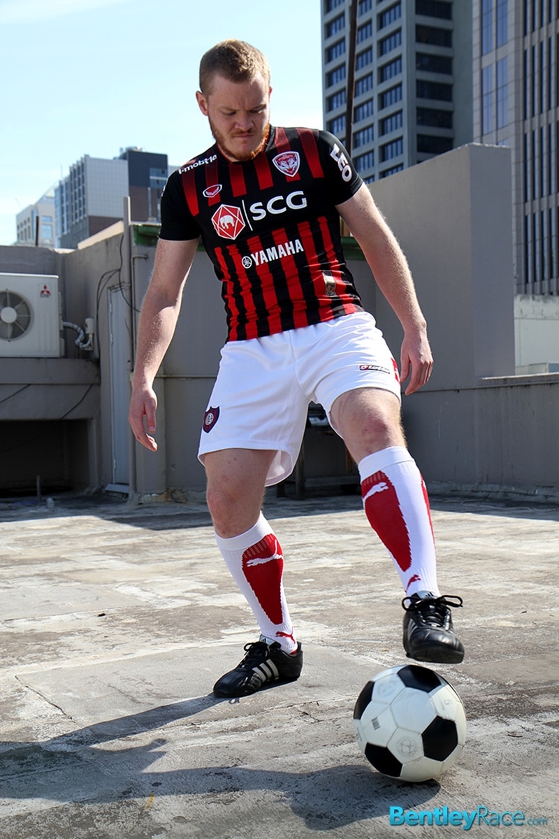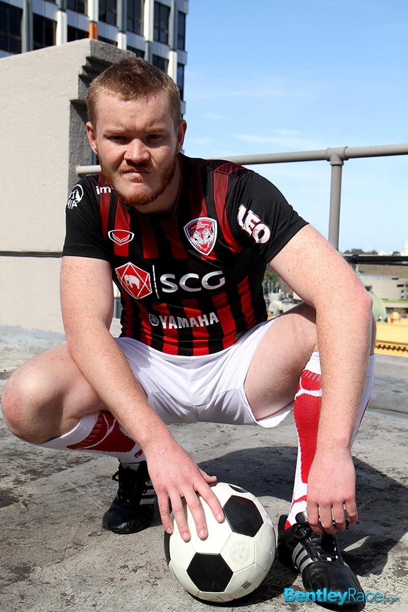 Bentley Race says: 26 year old Australian rugby player Beau Jackson loves getting naked out on the roof. He looks stunning in his soccer kit. The tight football gear looks so hot on red headed Beau.