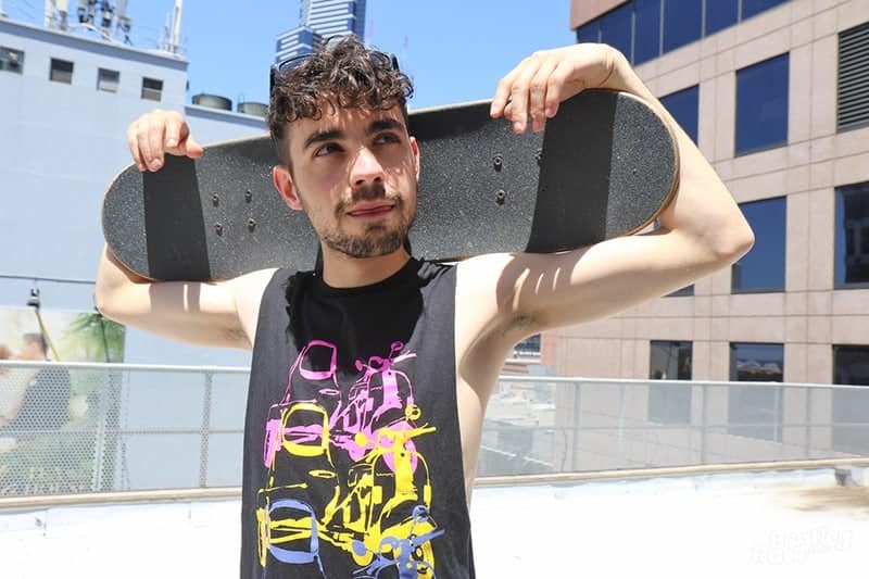 I wanted to get him back for a photoshoot on the roof and afterwards a sex video with me in the studio. We had a lot of fun taking nude skater shots on the roof.